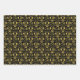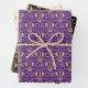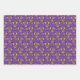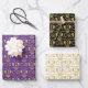 Royal Coronation 2023 Ogee Pattern Wrapping Paper for celebrating the Royal Coronation of King Charles III and Queen Camilla. The 3 sheets of wrapping paper have an attractive Ogee repeat pattern with a gold colored theme. Each sheet has a different colored background: black, white and purple.