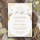 Amaze your guests with this elegant Indian wedding invite featuring a vintage crest and beautiful peacocks with real gold foil elements. Simply add your event details on this easy-to-use template to make it a one-of-a-kind Invitation. Flip the card over to reveal a beautiful floral pattern with peacock feathers.