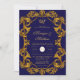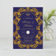 Design features a art nouveau design in shades of col alt blue and gold flourishes on a blue backdrop. Calligraphy or type writing with the design artwork. On the back of the cards is royal blue and gold damask patterns. This is a mix and match collection piece. Great for your wedding celebrations!