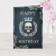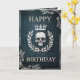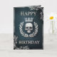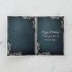 A dark luxurious cyan leather birthday card adorned with royal gothic silver relief featuring a menacing metallic silver skull flanked by a laurel wreath of shining silver leaves and finally a glorious blazing silver crown shining with dazzling pale light symbolizing an ancient royal linage.