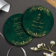 Royal Emerald Green Gold Florals Islamic Round Wedding Menu Card.