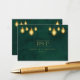 Royal Emerald Green Golden Hanging Lights QR code Wedding RSVP Enclosure Cards.