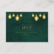 Royal Emerald Green Golden Lights QR Wedding RSVP Enclosure Card