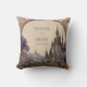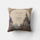 Transform your space into a storybook dream with this enchanted mediaeval castle in the forest pillow. The artwork features a grand fairytale castle with tall spires and intricate stone details, surrounded by lush autumn and lavender-toned trees. A circular ornamental arch frames the scene, giving it the feeling of stepping into a magical portal. In the distance, another castle rises against soft rolling hills, adding depth and mystery to the landscape.