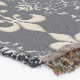 A quality printed throw has its advantages. This is a much finer weave throw than its loopier cousins, and though lighter, it is worth the investment for custom room accessorizing. The back is much prettier than the typical brown, and the fringe on the long sides very vivid, the selvage nicely done. Before photographing, I washed the throw in cold water, delicate, with a thicker woven throw the same size. On tumble dry low, this throw was dry in half the time as the other. This is a very practical quality if you use throws for furniture covers or to wrap up in frequently. The sleekness of the fabric makes it a great layer for accenting or protecting without the feeling of sitting on too much stuff. Perfect for napping or when you feel a light chill coming on. The color printing is beautiful and on this fabric, matched the design and color of my Photoshop image. This is an advantage for blending room fabrics and colors. The fringe on the short sides prints the colors from the design image and therefore varies from the side fringe. I streaked a white fractal line through the plaid pattern to give the illusion of weaving. This printed as crisp as an illusory thread, and put some white in the short side fringe, showing another advantage of print vs loomed- for artistic purposes, line lines, detail, and color integrity can be planned and preserved. My loomed throws have color limitations and more of a needlepoint texture. Print throws reproduce an exact image. The throw felt a little stiff straight out of the package, but this went away in the first delicate wash. Of course I searched the wash water for ink or bleeding and there was none.