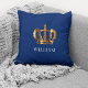 Royal Gold Crown Personalised Name Blue Throw Pillow