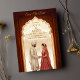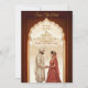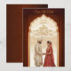 Announce your special day with this elegant and traditional Indian wedding "Save the Date" card. The beautiful design features a hand-painted illustration of a regal Indian couple framed by a stunning, intricately carved archway. The rich, earthy tones of deep brown and maroon create a warm and inviting feel, while the gold accents add a touch of luxury. This customisable template is perfect for a Hindu or South Asian wedding, with ample space to personalise the names, date, and location. Ideal for a "Save the Date" or a digital invitation, this card beautifully captures the essence of a timeless love story.
