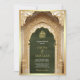 Royal Islamic Arch Olive Green Gold Muslim Wedding Invitation