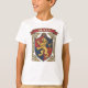 This personalized t-shirt features a heraldic crest. The central element is a golden Lion Rampant (standing on its hind legs) set on a quartered shield of red and deep blue. The shield is framed by intricate gold Celtic knotwork and topped with a small crown.
