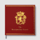 Exterior is shown with a Royal emblem of the lion and crown in gilded real gold foil. Preselected text for your name or title for you to personalize, sample name shown is "Breitsprecher".