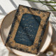 This midnight celestial design blends deep sapphire tones with ornate golden constellations for a truly regal aesthetic. Inspired by baroque art and the romance of the night sky, it evokes timeless beauty and sophistication — perfect for an elegant evening ceremony or star-themed celebration.
