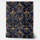 This luxurious Princesscore pattern features intricate golden filigree intertwined with sapphire-hued floral and jewel-like embellishments, set against a deep midnight blue background. The ornate design exudes regal sophistication, evoking the grandeur of aristocratic ballrooms and royal tapestries. Perfect for opulent fashion, wallpaper, or high-end stationery.