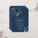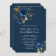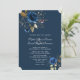 Royal Navy Blue Gold Flowers Wedding Invitation