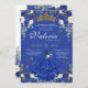This elegant floral quinceanera invitation features butterflies (you can move or remove them) and beautiful blue and white florals like roses and hydrangea and peonies. There is a beautiful golden tiara and all text can be customised.