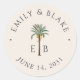 Royal Palm Logo Elegant Tropical Monogram Wedding Classic Round Sticker