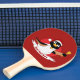 Ping pong paddle with an illustration of cute little royal penguin holding a sceptre and wearing a red Santa hat; Christmas holiday cartoon design for kids, editable template design with custom field for your own text, illustrated by Radka Kavalcova