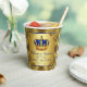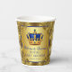 Prince baby shower paper cups with fancy royal blue and gold crown on a beautiful gold swirl background. You can add the text of your choice to these royal blue and gold prince baby shower cups.