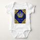 Boys prince baby shirts with pretty royal blue and gold jewel crown on a rich royal blue and gold swirl background. You can add the text of your choice to personalise this adorable prince baby shirt. There is also a crown on the back where you can add text, or you can remove it if preferred.