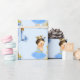Sweet little princess with her crown and carriage in front of her castle. Done in baby blue & gold. Use for birthdays, baby showers or announcements.