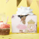 Sweet little princess with her crown and carriage in front of her castle. Done in pink & gold. Use for birthdays, baby showers or announcements.