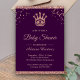 Invite your guests with this elegant baby shower invitation featuring a beautiful rose gold crown and modern typography on a purple background. Simply add your event details on this easy-to-use template to make it a one-of-a-kind invitation. Flip the card over to reveal a faux rose gold glitter texture on the back of the card.
