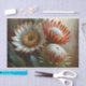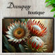 Transform ordinary furniture into statement pieces with this stunning protea botanical design. Featuring a magnificent white king protea bloom alongside dramatic red companions, this artwork combines classical botanical detail with modern drama. The rich emerald foliage and golden centre stamens create depth against a sophisticated ombre background.