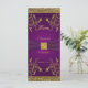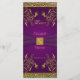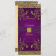 This purple and gold floral menu card with a purple FAUX ribbon, gold medallion, and FAUX textured background matches the wedding invitation shown below. It is designed on a rack card so the front is glossy and the back has a matte finish. If you would like a menu card on metallic invitation paper to match your invitation, or if you have any requests for additional items or changes, please email niteowlstudio@gmail.com with your request.