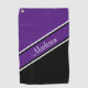 Royal Purple Black Diagonal Stripe Script Name Golf Towel