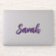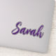 With this font, some letters are spaced far enough apart that the system will automatically create two or more stickers rather that one cut out sticker for your name. If you need help fixing this, send a letter to the creator. To fix it yourself, add text with individual letters or syllables and then manually move those elements closer until the yellow outline shows it will be one sticker.