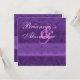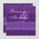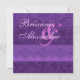 This design with its Royal Purple damask with a watercolor feel topped with an ornate ribbon an elegant choice for your wedding invitations. Add your names on the front, to the front, and personalise with your text on the back. Try out different papers to see which look you like the best, by clicking on "Invitation Options" and then "Paper Type". Enjoy creating your own special look!