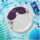 Beautiful royal purple flowers & silver grey leaves on grey marble background wedding paper plate