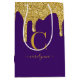Royal Purple Gold Sparkle Glitter Drips Monogram Medium Gift Bag