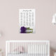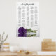 This gorgeous wedding seating chart features a photo of a long stemmed deep royal purple coloured rose lying on its side reflecting in a pool of water with waves and ripples. The title reads "please find your table" in elegant lacy script calligraphy. There is space for the up to 250 names with the names of the couple and wedding date below. Wonderful way to help your guests find their tables while making your reception more beautiful.