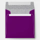 This square envelope fits the 5.25" square invitations and is in royal purple with SIMULATED silver glitter on the inside and two grey toned labels for return address.