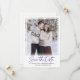 Your couple's photo is showcased on this elegant save the date card. A simple white frame gives it the importance it deserves. Save the date is written in a modern and trendy text. Two lines of text let you personalise your message. Text on the back provides more information. Designed to easily embellish any style photograph for any season. Very easy to customise.