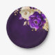 Royal Purple Violet Gold Floral Botanical Wedding Paper Plate