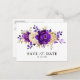 Royal Purple Violet Gold Floral Save the Date Postcard