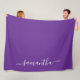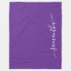 Royal Purple White Elegant Script Signature Name Fleece Blanket