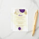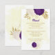 Romantic royal purple & white flowers with gold leaves botanical wedding details enclosure cards.