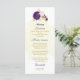 Romantic royal purple & white flowers with gold leaves botanical wedding menu card.