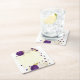 Romantic royal purple & white flowers with gold leaves botanical wedding paper coaster.