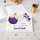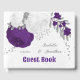 Romantic royal purple & white flowers with silver leaves botanical wedding guest book