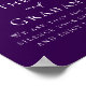 This royal purple wedding poster features beautiful white typography on a solid deep violet print for an evening ceremony in the winter. Minimalist script and a bold colour makes your reception print pop and stand out from the crowd.