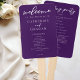 This royal purple wedding program hand fan features beautiful white typography on a solid deep violet for an evening ceremony in the winter. Minimalist script and a bold colour makes your favours pop and stand out from the crowd.