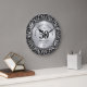 Happy 25th wedding anniversary customisable clock featuring a royal ornamental silver frame on a black background.