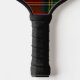 Monogram Scottish tartan plaid pickleball paddle. This is the Royal Stewart tartan or Royal Stuart tartan pattern.