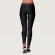 Chic and cheerful leggings with a classic tartan twist. There's a pattern of the famous Royal Stewart, or Stuart, red tartan plaid at the waist and ankle on a black background.