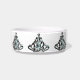 This is a heavy, durable bowl decorated with Tibbies of many colors, the perfect size for hungry/thirsty Tibs. The design is interesting and printing clear.