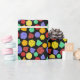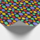 This colourful patterned wrapping paper is perfect for wrapping up gifts for fans of role-playing and fantasy board games. It features illustrations of different multi-sided dice in green, purple, orange, red and yellow set against a black background.