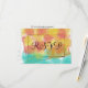 Pretty gouache watercolor wedding theme in yellow, orange, pink, turquoise blue colours against white background. RSVP is written in elegant black script inside geometric double rectangles. Personalise backside with reception party details. Original Artwork by TamiraZDesigns.
